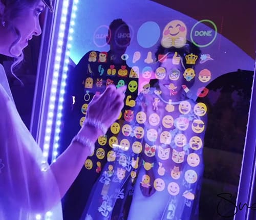 Experience the ultimate in interactive picture-taking technology with emoji stamping, touchscreen signings, unlimited 4x6 prints, and customizable photo layouts. The 6-foot-tall touchscreen mirror displays stunning custom animations, providing a unique and luxurious photo booth experience for you and your guests. π΄πΈ