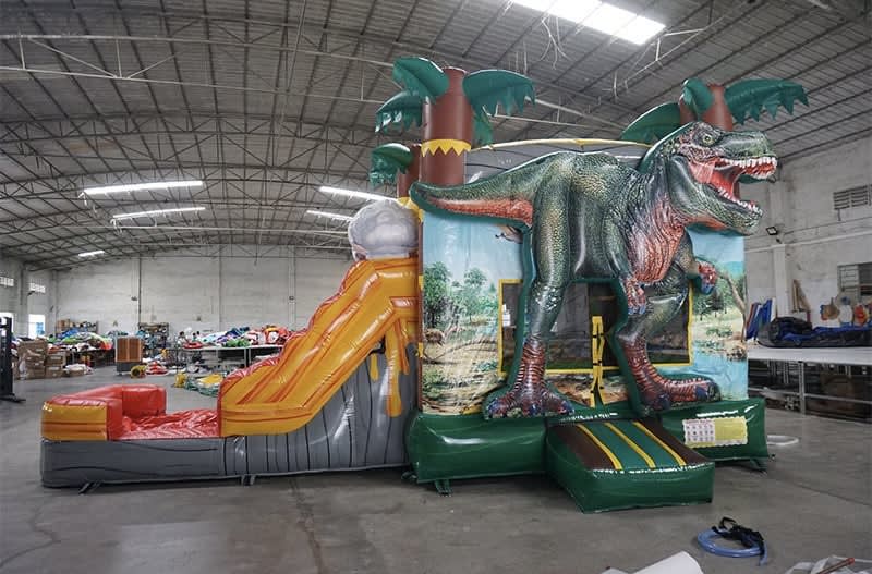 Transform your next event into an unforgettable Jurassic adventure with our Dinosaur Combo Jumper! Perfect for birthday parties and summer parties, this versatile inflatable can be used as both a dry slide and a thrilling water slide, adding a splash of excitement to any gathering.