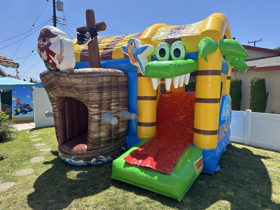 Ahoy, me hearties! 🦜 Set sail on a swashbuckling adventure with our Pirate Jumper with crocodile slide! This fantastic inflatable jumper rental is perfect for your little buccaneers in Los Angeles. 🏰🌴