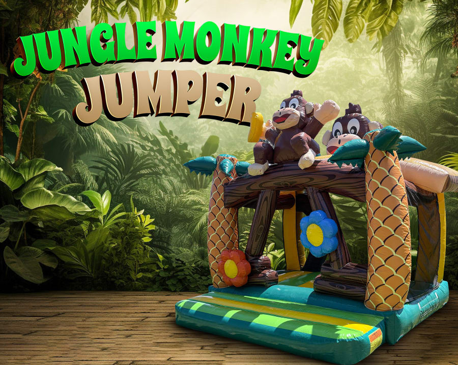 Welcome to the jungle! 🐒 Our Jungle Monkey Jumper is the perfect addition to your next jungle-themed party in Los Angeles! 🎉 This vibrant and exciting jumper features a large front opening and adorable double monkey figures that will keep the little ones entertained for hours.